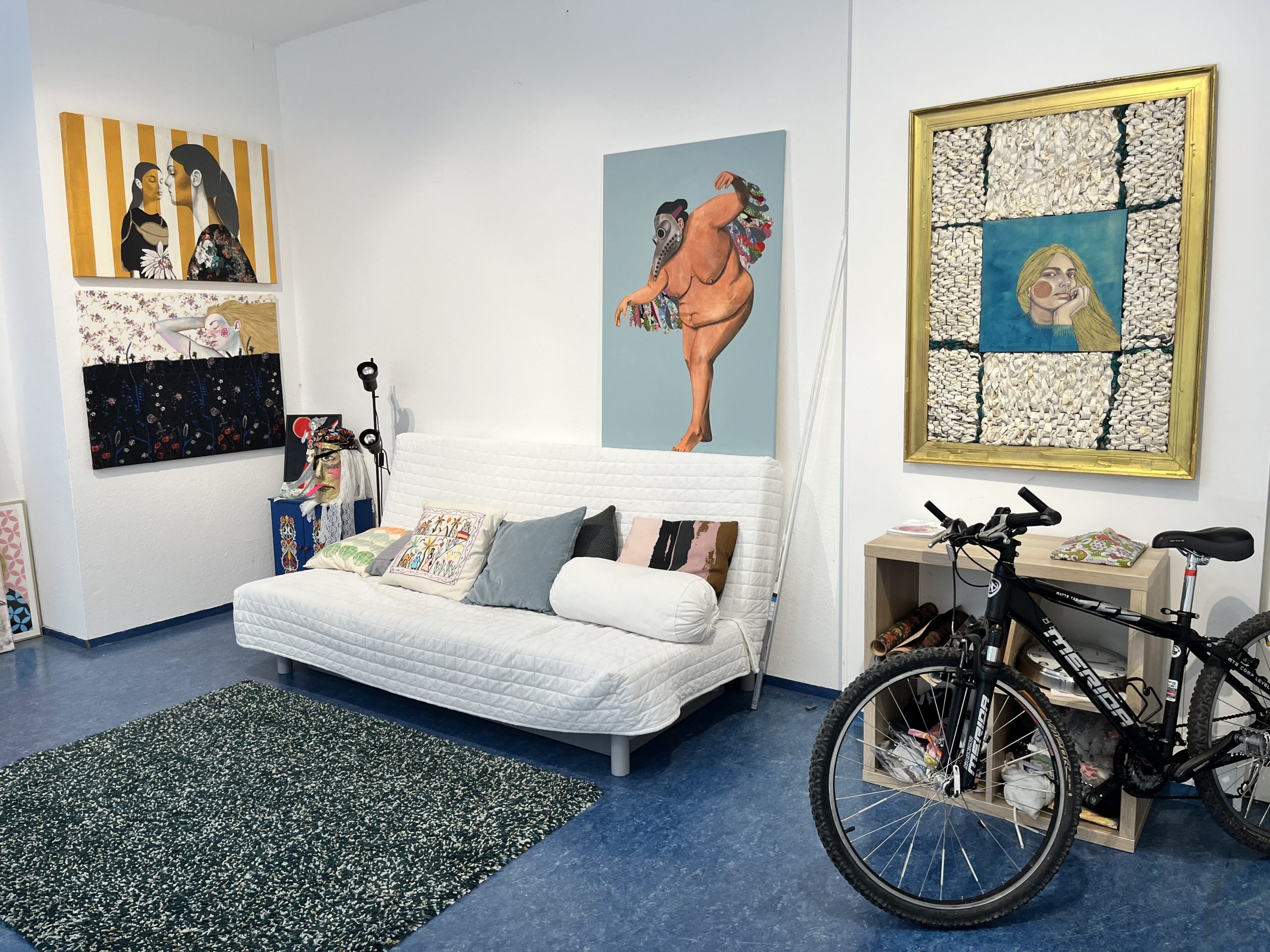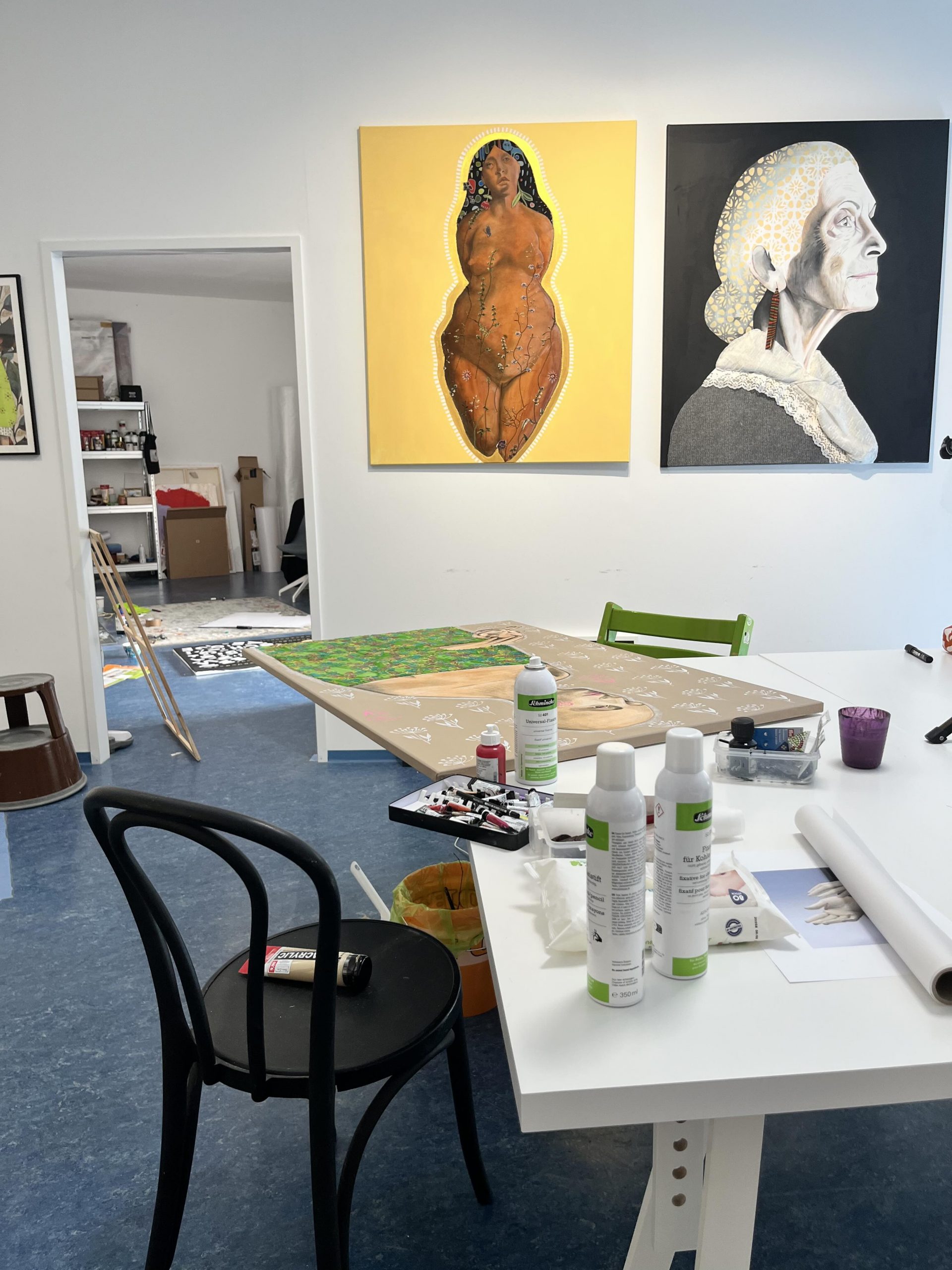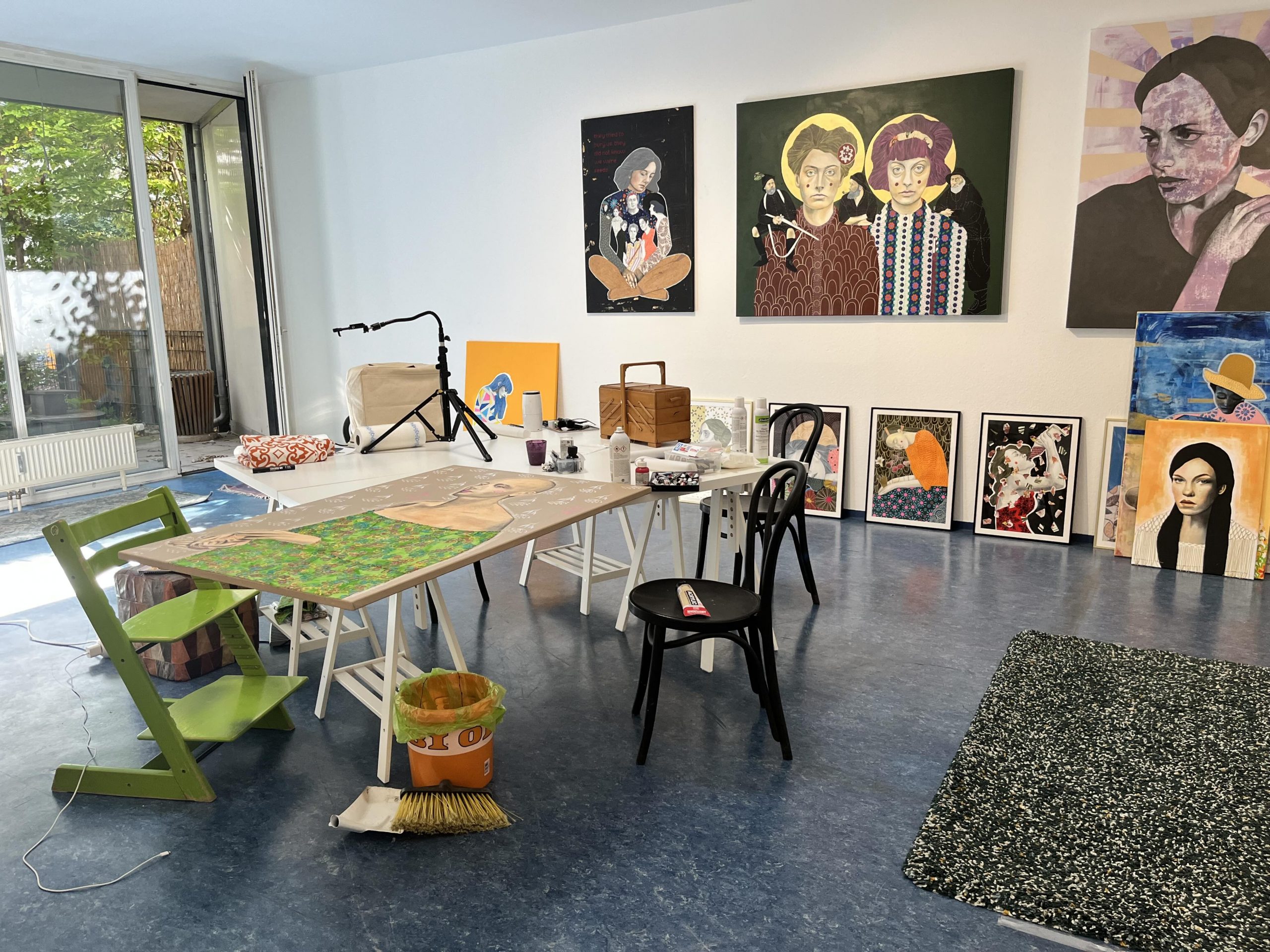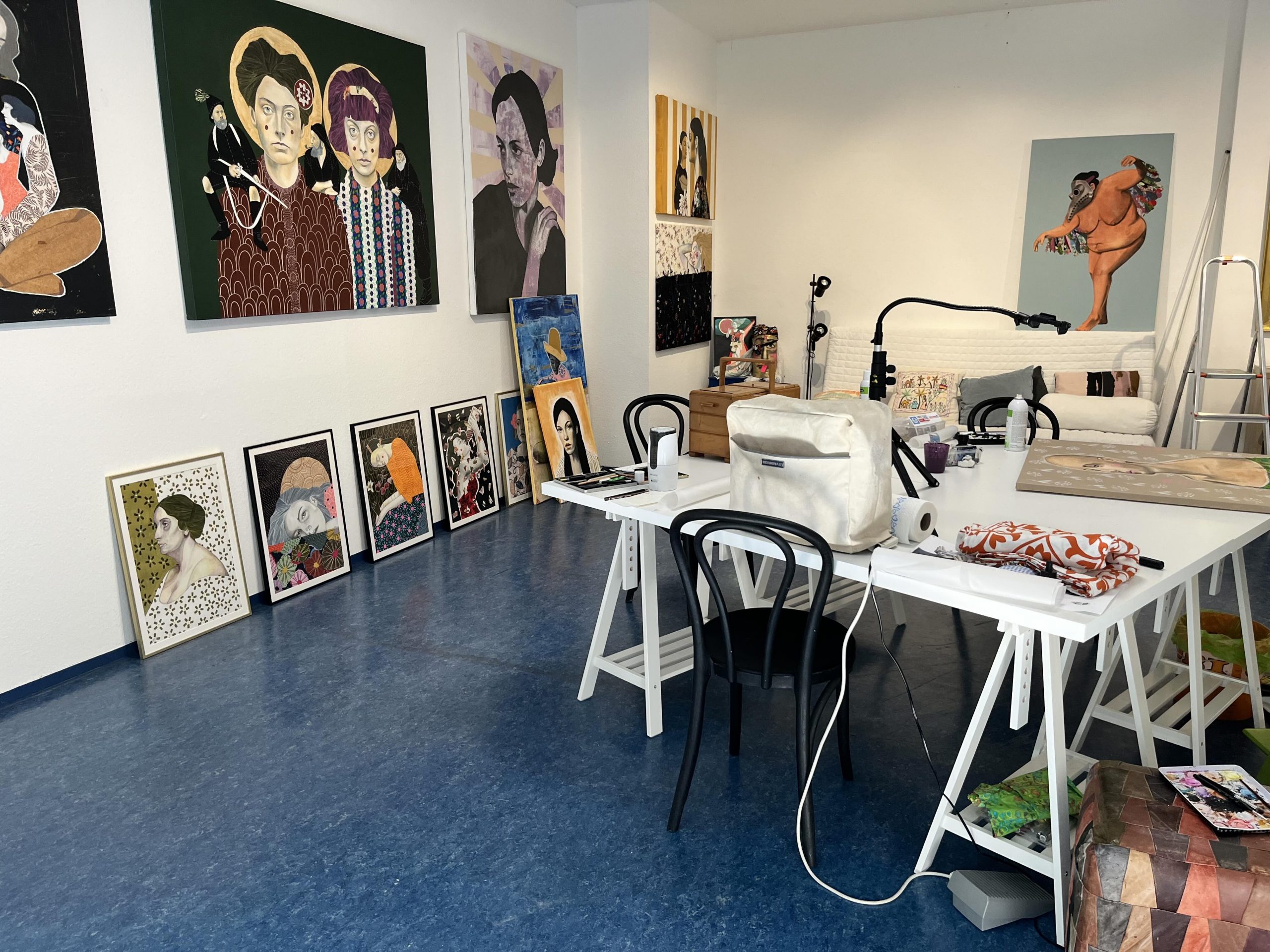 Mein Studio befindet sich in Atzgersdorf, in einem Wiener Gemeindebau, der nach der Juristin, Medizinerin und Widerstandskämpferin Ella Lingens benannt ist. Für mich ist es der ideale Ort, an dem ich mich entfalten und verwirklichen kann. Hier bin ich Kaiserin – und darf walten und regieren, wie es mir gefällt. Wer mich im Studio besuchen will, darf mich gern um eine Audienz bitten 😉 Schreib mir einfach eine Mail und wir machen einen Termin aus.
